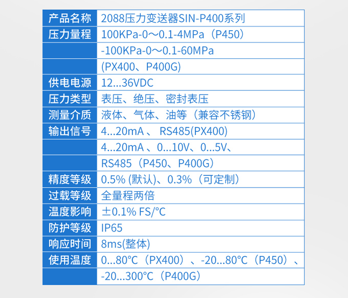 SIN-P400壓力變送器,采用全數字電路板,做到用戶可在一定范圍內自行現場修改量程,極大的方便了現場使用。